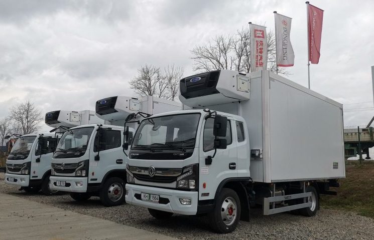 Очередная партия из 4 грузовых автомобилей на базе шасси Dongfeng C120S с изотермическим кузовом и автономным холодильным оборудованием передана клиенту.