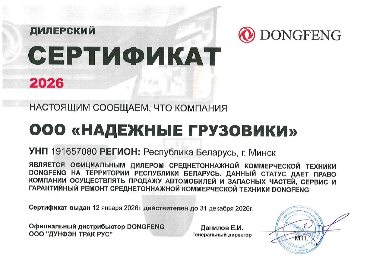 Сертификат генерального дилера продуктов DFAC